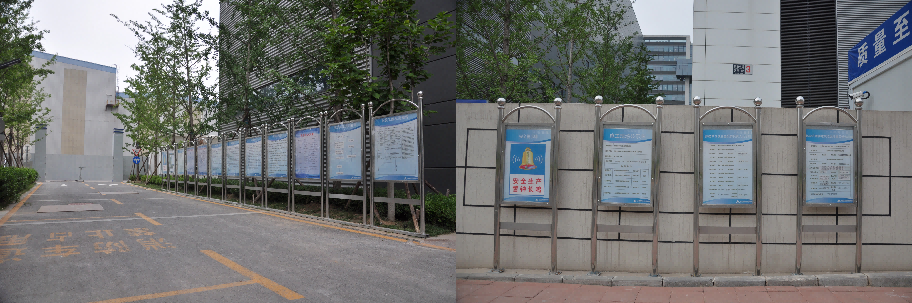 為便于項目管理,項目在1#樓二、三層東部設立項目指揮部、建設單位辦公室、監理單位辦公室、設備服務商辦公室、材料封樣存放室等配套用房,一層設立工人臨時就餐區。進門處設立樓層索引牌,走廊設立文化墻,采用印刷海報及展板等形式,展現企業文化,項目安全文明施工,項目管理規章制度牌等。