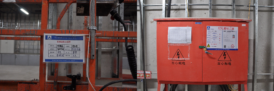 為降低因用電故障影響日常生產工作,臨時用電采用兩路電源供電,放射式配電,平層設置多個二級配電箱,滿足規范使用要求。