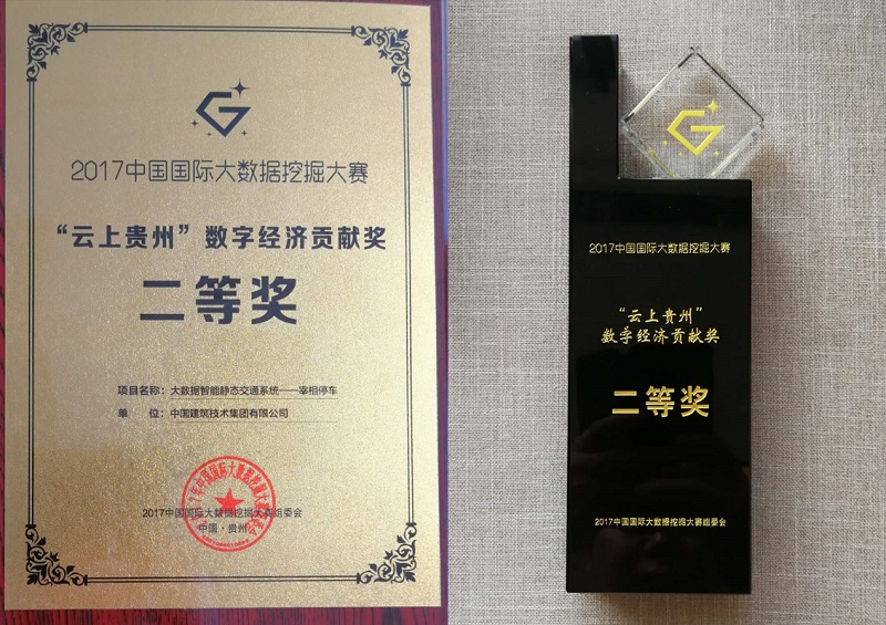 2017年12月28日,2017中國國際大數據挖掘大賽在貴州省貴陽市落幕,我公司基于大數據云平臺的智能停車項目--宰相停車項目,獲得“云上貴州-數字經濟貢獻獎”二等獎。