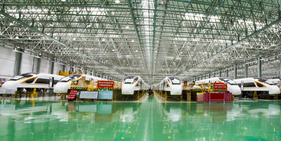 ▲中車長客“復興號”中國標準動車組裝配現場