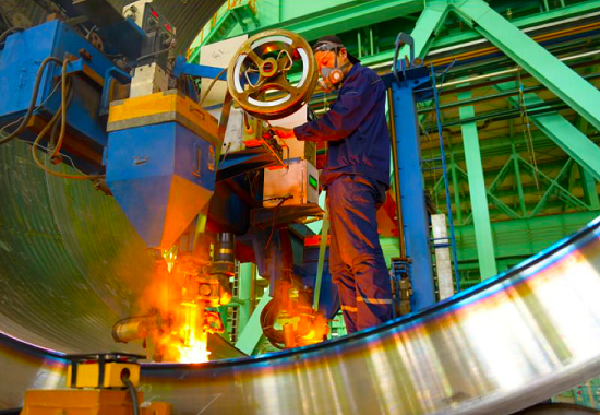 ▲中國一重大連核電石化公司石化筒節生產場景