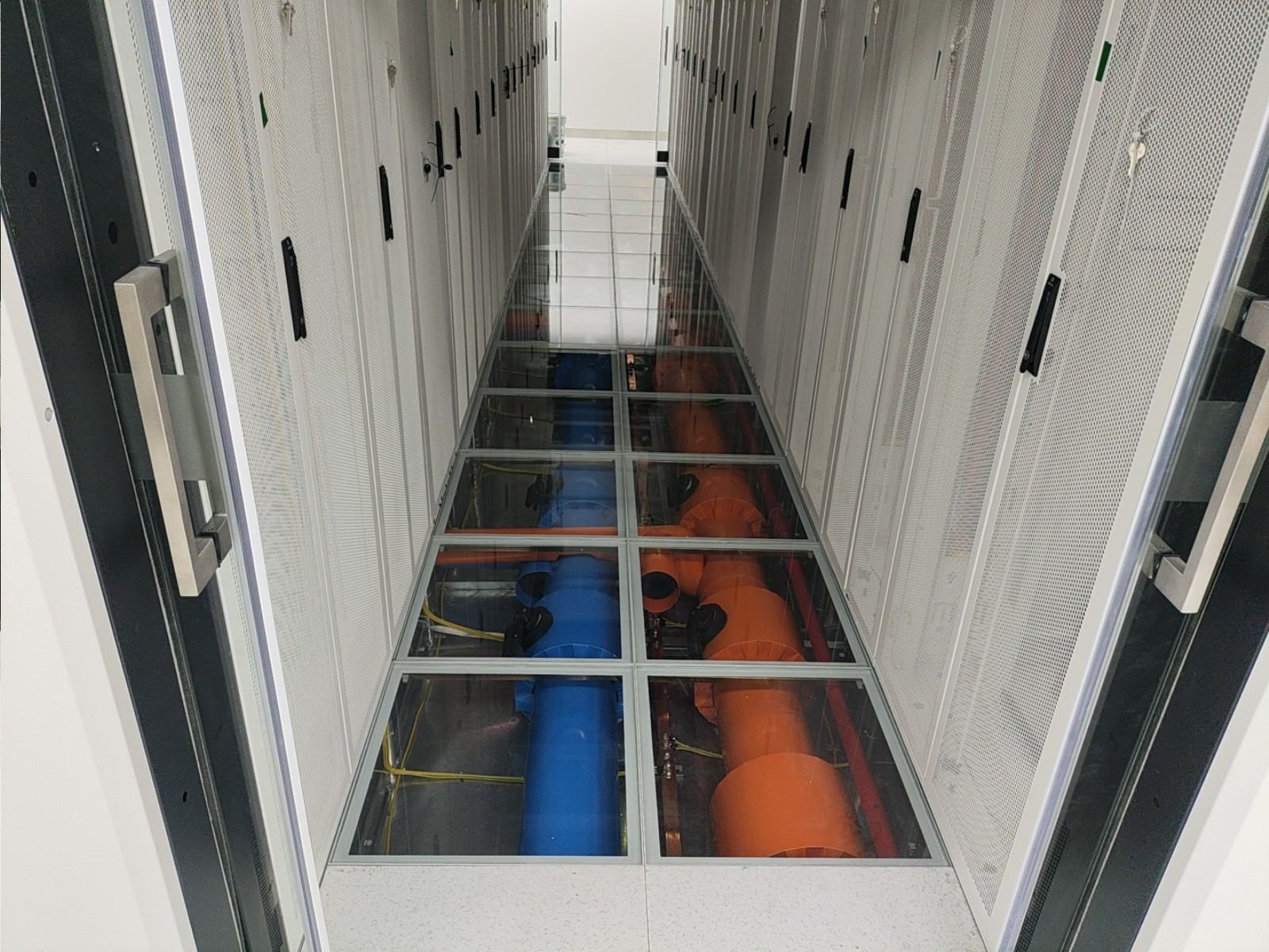 通過部署華為一體化模塊化UPS,我們實現了設備空間占用的顯著節約、連接線纜的減少以及系統可靠性的提升。維諦品牌的微模塊成套系統,包括機柜、精密空調、動環監控和電池監控等組件,不僅系統集成度高,而且可靠性強,其軟件平臺的開發響應也十分及時。西門子的密集母線和智能小母線系統,集成了母線測溫和在線監控功能,進一步增強了系統的可靠性。封閉熱通道的設計,確保了系統擁有充足的冷量儲備,從而提高了容災能力。封閉通道的玻璃觀察地板和內部管道的PVC彩殼包覆,不僅保證了整體風格的統一和協調,還提升了美觀度。仿真測試機房3,一個280平方米的屏蔽機房,其頂面殼體設計為平頂,并且封閉熱通道采用了95吋LED顯示屏整體式移門,極大地提升了觀摩機房的視覺效果。在整體顏色管理方面,我們采用了紅/黃雙色對供配電A/B路、密集母線、智能小母線、電力電纜、PDU外殼等進行區分,確保了清晰醒目。此外,采用彩鋼板墻面和夾心彩鋼板頂面,有效提升了機房的潔凈度和防塵能力。