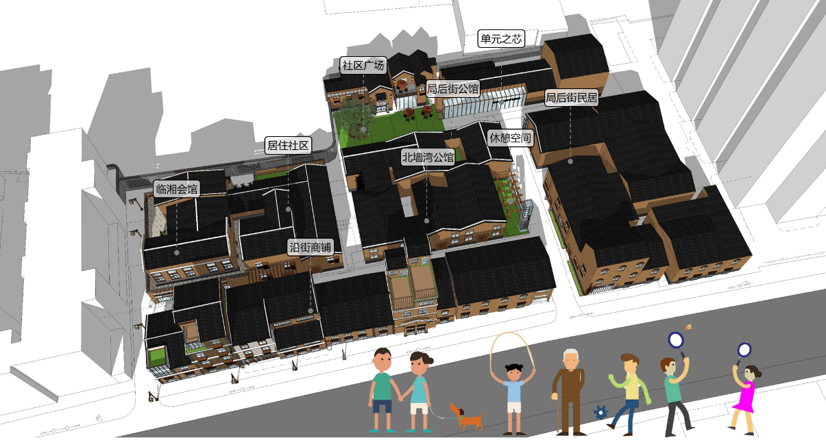 1.?更新手法:組織更新單元,針灸式更新方法:通過對現狀建筑及街巷的梳理,劃分合理的更新單元,再以每一個更新單元為基礎進行針灸式更新,更好的留住原住民,保護街區整體風貌和生活氛圍,減小更新壓力。