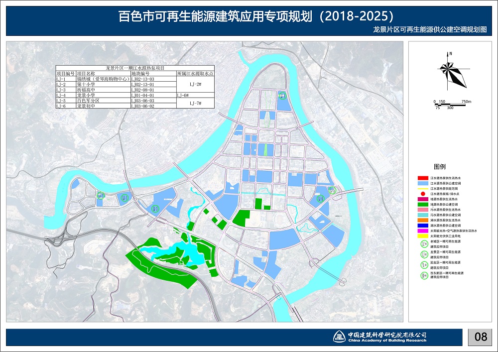 本規劃大規模應用江水源熱泵。劃針對百色市獨特的豐富水源——右江水系,專門制作江水源熱泵規劃專篇,研究江水源熱泵效率的各影響因子,以取排水點互不干擾為原則,科學排布取排水點。并根據建筑物布置確定江水源熱泵站點位置。